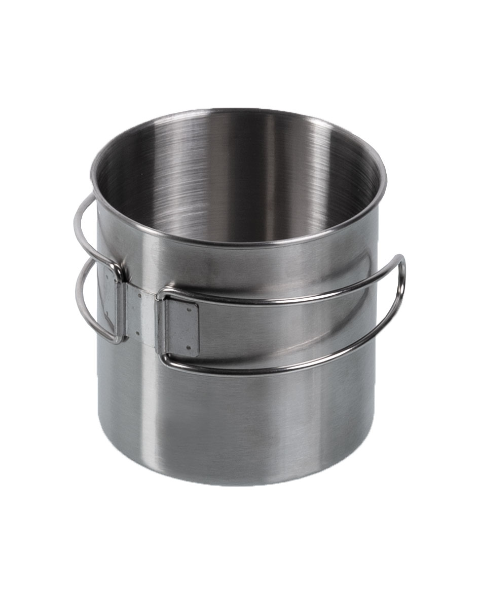 Robuster und vielseitig einsetzbarer Edelstahlbecher. Durch den faltbaren Griff hat der Trinkbecher ein kompaktes Packmaß.